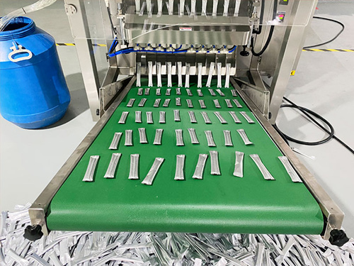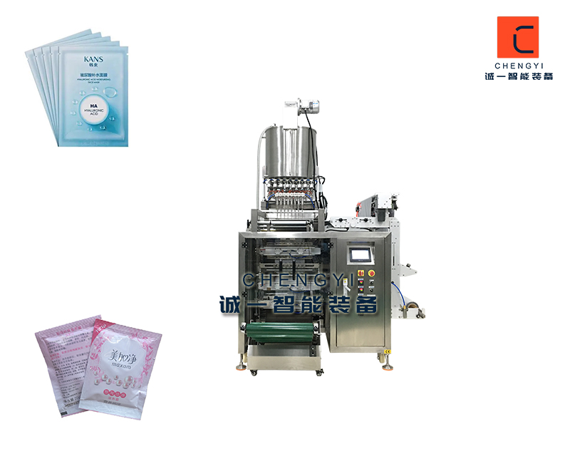全自動多列背封液體包裝機適用于醫(yī)藥、食品、日化、保健品、農(nóng)藥、化妝品等行業(yè)產(chǎn)品中的液體、膏體、醬料等全自動軟包裝。如:漱口水、蜂蜜、化妝品、醬料、油、果汁、飲品、藥液等。